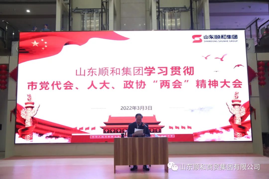 會議在雄壯的國歌中拉開帷幕,集團全體人員認真學習臨沂市黨代會、“兩會”精神,學習之后,山東順和集團黨委書記、董事長趙玉璽作出重要指示。