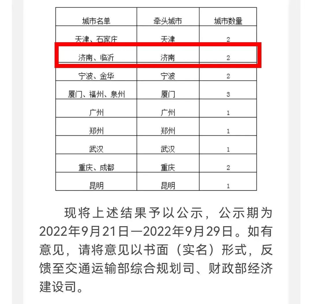 9月21日,交通運輸部公示2022年國家綜合貨運樞紐補鏈強鏈?zhǔn)着鞘?,山東濟南、臨沂兩個城市入選,公示期為2022年9月21日—2022年9月29日。