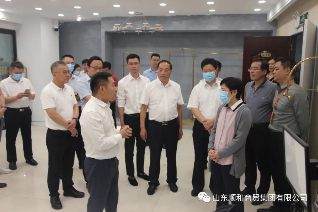 集團(tuán)黨委書(shū)記、董事長(zhǎng)趙玉璽首先向任愛(ài)榮副省長(zhǎng)一行介紹了山東順和集團(tuán)的發(fā)展情況,以及順和集團(tuán)如何從傳統(tǒng)商貿(mào)向直播電商轉(zhuǎn)型的發(fā)展歷程。