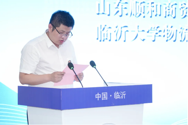 聯(lián)合會(huì)副會(huì)長(zhǎng)孫立偉上臺(tái)宣讀《臨沂市商貿(mào)物流聯(lián)合會(huì)共同倡議》。