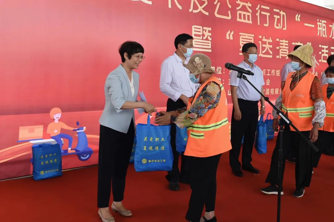 調(diào)研組深入園區(qū)實(shí)地走訪,了解貨運(yùn)物流司機(jī)的權(quán)益保障情況,并參加“關(guān)愛(ài)卡友公益行動(dòng)、‘一瓶水傳遞愛(ài)’暨‘夏送清涼’活動(dòng)”,為貨運(yùn)物流司機(jī)職工代表捐贈(zèng)保險(xiǎn)、發(fā)放礦泉水等防暑物資,隨后與物流企業(yè)有關(guān)負(fù)責(zé)人召開(kāi)專題研討會(huì)。