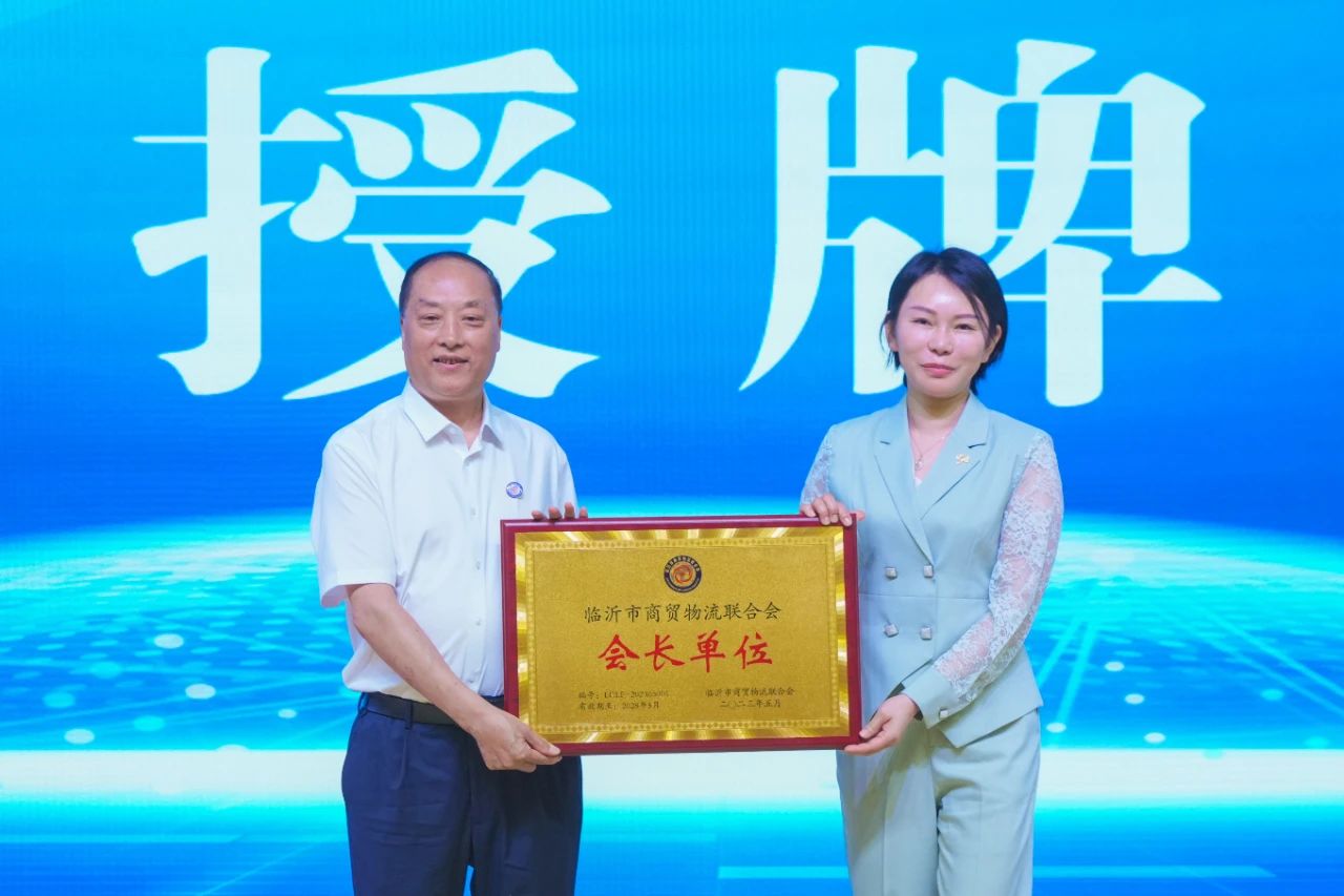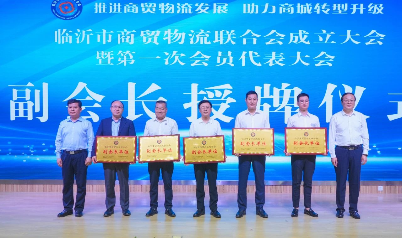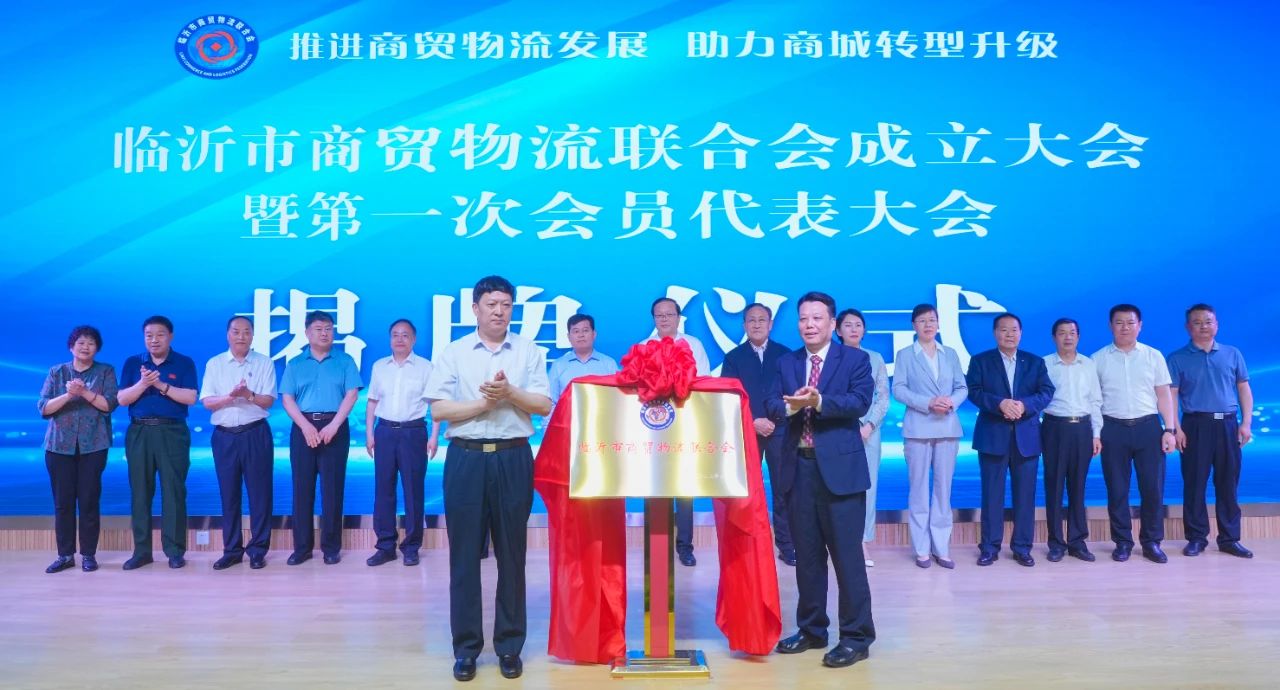 臨沂市委常委、市政府副市長雋新陽與中國商業(yè)聯(lián)合會采購商分會孫琛瑋副會長為臨沂市商貿(mào)物流聯(lián)合會揭牌