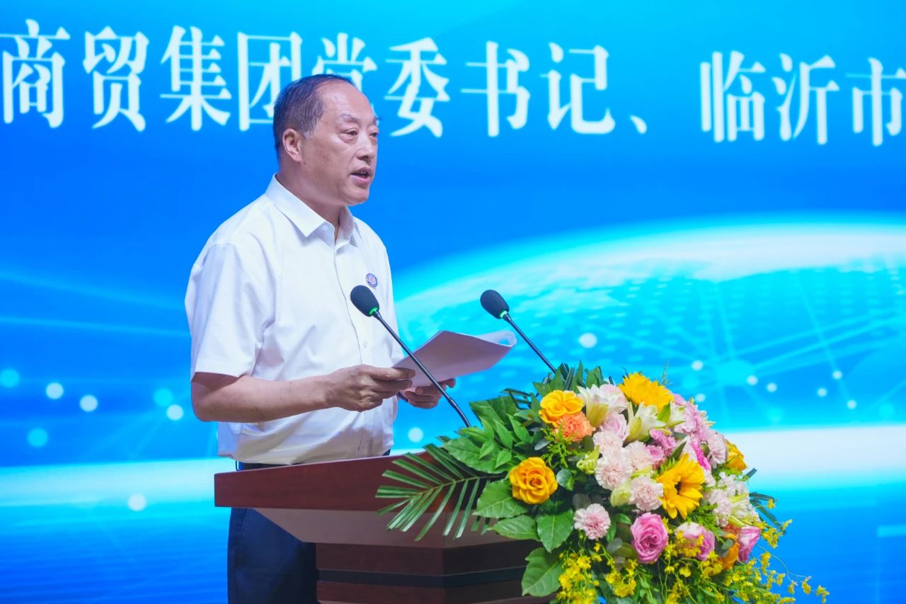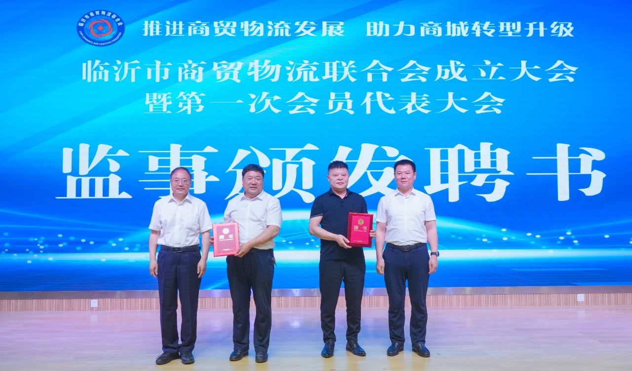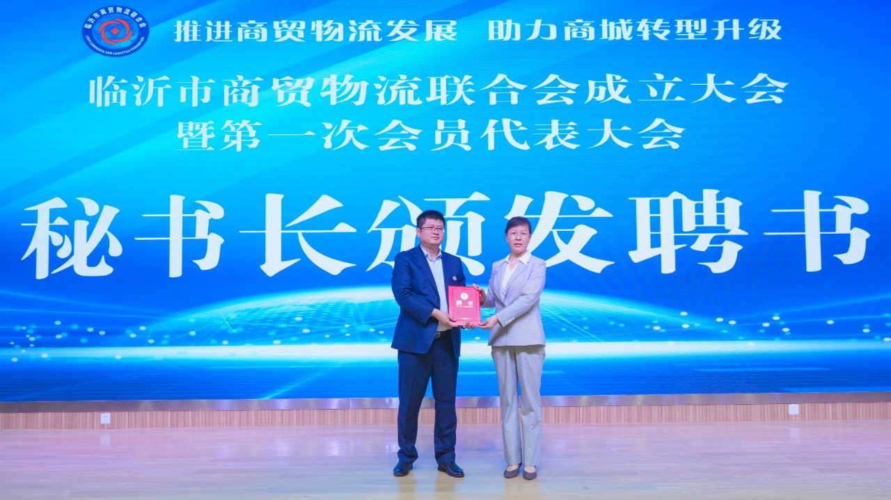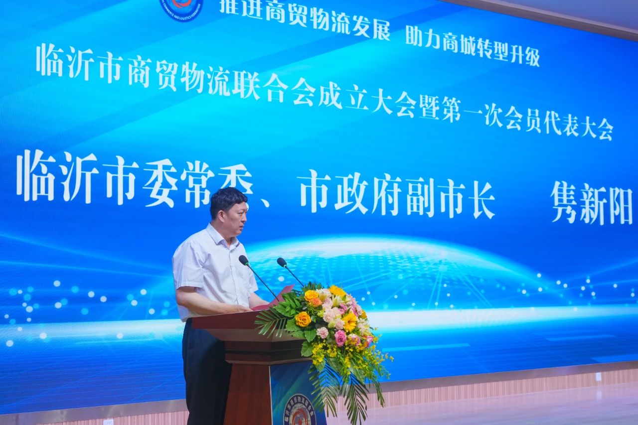 臨沂市委常委、市政府副市長雋新陽與中國商業(yè)聯(lián)合會采購商分會孫琛瑋副會長為臨沂市商貿(mào)物流聯(lián)合會揭牌