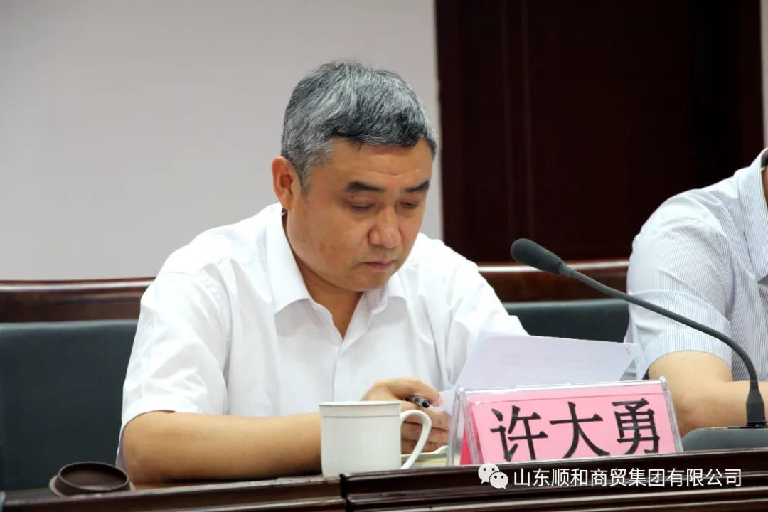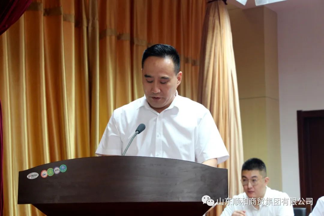 7月27日上午,順和集團2022年上半年度工作總結(jié)大會在集團15樓會議室隆重召開。集團黨委、董事會成員、班子成員、李莊社區(qū)兩委成員、集團及其下屬企業(yè)部分干部職工參加會議。大會由集團黨委副書記、董事長許大勇主持。 大會在莊嚴的國歌聲中正式開始。會上,集團黨委副書記、總經(jīng)理趙國偉傳達上級文件:《臨沂商城轉(zhuǎn)型升級實施方案(2022—2026年)節(jié)選》。順和國際、順和物聯(lián)、臨沂電動自行車市場、集團企業(yè)管理辦公室、供應(yīng)鏈金融部、安全管理辦公室、商貿(mào)物流研究院的主要負責(zé)人依次就上半年重點工作完成情況和下半年主要工作計劃進行表態(tài)發(fā)言。