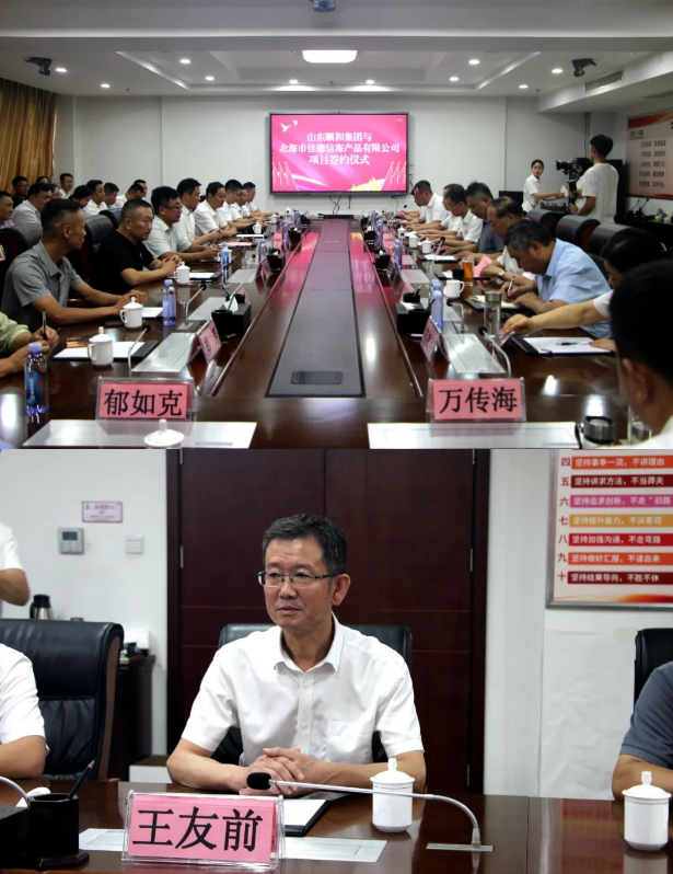 7月21日上午,山東順和集團與北海市佳德信海產(chǎn)品有限公司項目簽約儀式在順和集團隆重舉行。蘭山商城管委會副主任、黨委委員王友前,蘭山街道黨工委書記姜修偉,蘭山區(qū)市場監(jiān)管局黨組書記齊寶進,北海市佳德信海產(chǎn)品有限公司董事長孫紅雷及運營團隊成員,順和集團黨委、董事會、監(jiān)事會、李莊社區(qū)兩委成員,各企業(yè)、直屬部門負責(zé)人及相關(guān)工作人員參加。儀式由集團黨委副書記、董事長趙國偉主持。